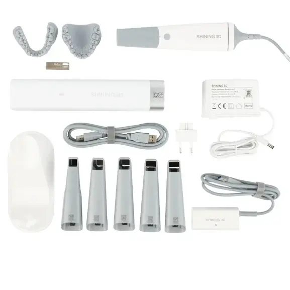 Shining 3D Aoralscan 3 — это высокоточный интраоральный 3D-сканер, предназначенный для быстрого и точного сканирования. Благодаря использованию структурированного света, сканер обеспечивает невероятную точность до 25 мкм, позволяя получать высококачественные 3D-модели зубных рядов, прикусов и оттисков. Он подключается через USB 3.0, обеспечивая стабильную и быструю передачу данных.